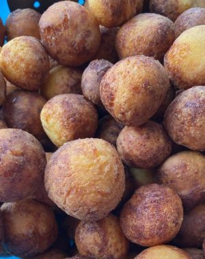 Камырны кул белән генә баскалап җәеп, киң генә итеп полоскалар кисеп, чәк-чәк кискән кебек кисеп кул белән шарчыклар ясыйсың һәм майда йөздереп пешерәсең