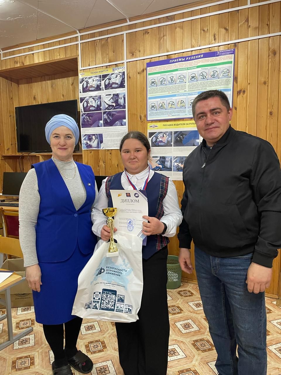 Катнашучылар юл хәрәкәте кагыйдәләренең теоретик белемнәрен тикшерделәр һәм автомобильдә маневрларны эзлекле башкардылар.