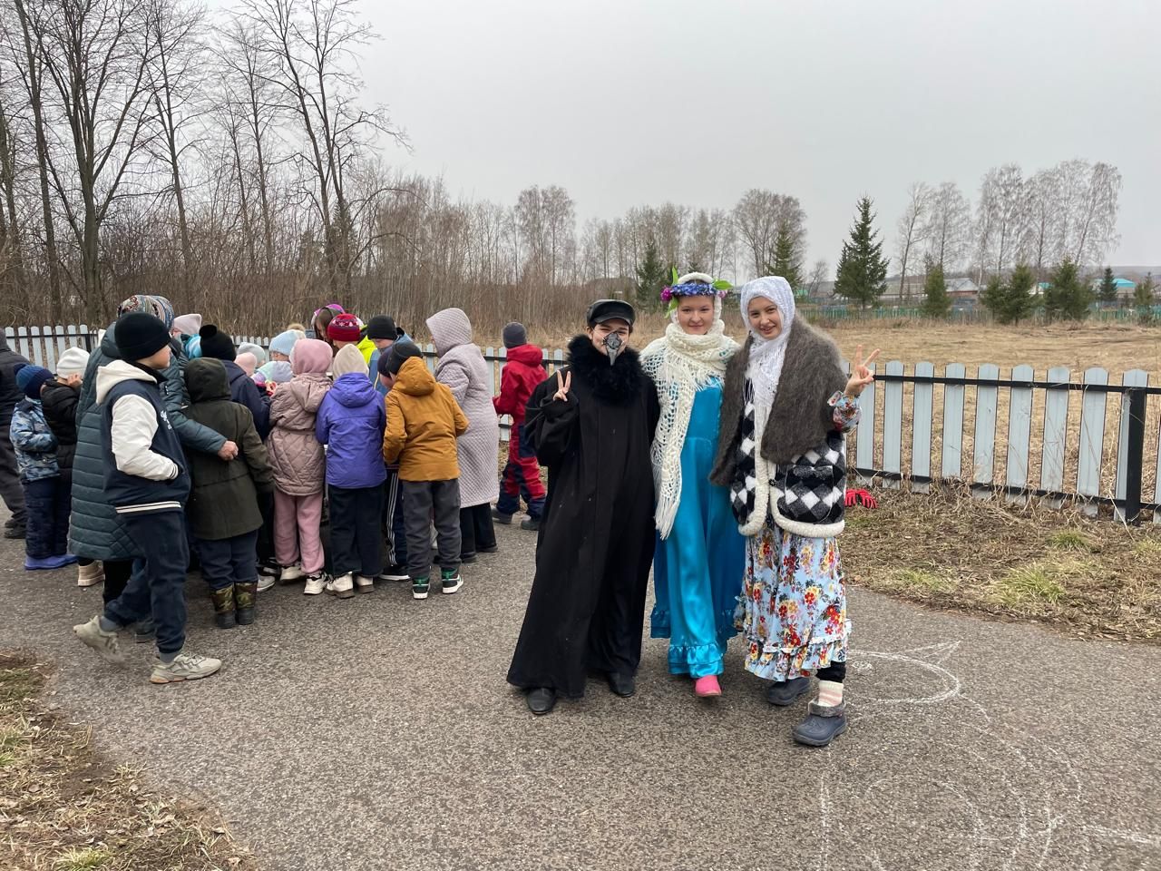 Балалар авыл урамында йомырка, ярма җыйдылар. Авыл халкы балаларны матур итеп каршылап, күчтәнәчләр биреп озата барды.